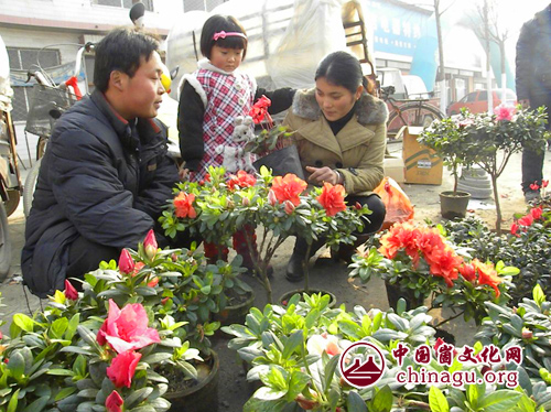 崮文化网讯 随着元旦的临近,在蒙阴县常路镇有不少居民,来到花卉大棚和花卉市场,购买花卉扮靓居室,给新年增添吉祥和喜庆的气氛。一些经营鲜花生意的花农,也紧盯节日市场,准备了大量的各种吉祥、喜庆的花卉品种,供居民选购。为了图个喜庆,居民们大都喜欢选购红火鲜艳、寓意吉祥的鲜花,尤其是仙客来、杜鹃、吉祥果等花卉销售的格外红火。目前全镇3处花卉市场和5个花卉大棚里,前来购买花卉的居民络绎不绝,花卉市场一片红火。(张纪增)