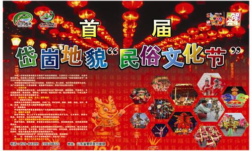 崮文化网讯 以灯会戏曲、民俗民艺、奇人绝技、地方特色美食等为主线的蒙阴县首届“岱崮地貌民俗文化节”将于2013年春节期间隆重推出。文化节由岱崮镇人民政府、山东东蒙企业集团主办,旨在为进一步推动岱崮地貌文化产旅游业的品牌建设,让居民过一个快乐祥和、内容丰富的春节。首届“岱崮地貌民俗文化节”的主要内容有: