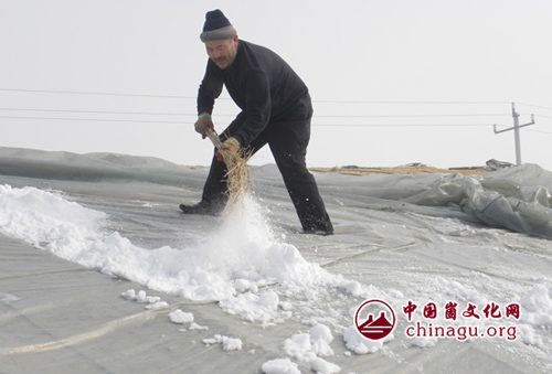崮文化网讯 为防止降雪给大棚蔬菜种植造成不利影响, 1月21日一大早,山东省