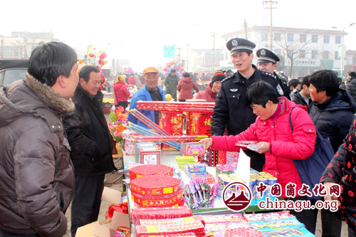民警向群众宣传烟花爆竹安全常识