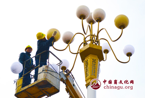 崮文化网讯 为让群众过上一个亮亮堂堂的新年,蒙阴县常路镇将镇商业街、广场上的路灯和景观灯进行了更换,更换的节能灯为新型LED灯。这种灯和普通节能灯相比,具有更加高效、安全、节能、环保、寿命长、响应速度快、显色指数高等独特优点。目前,该镇更换的LED灯数量已达80多套。图为2月1日广达源照明有限公司两名员工正在更换安装LED灯。(张纪增张萍)