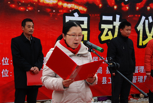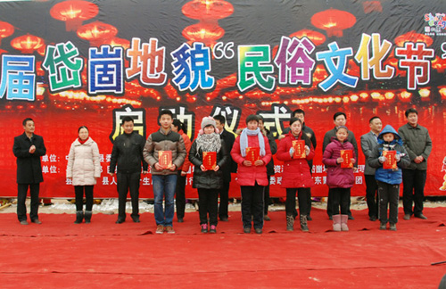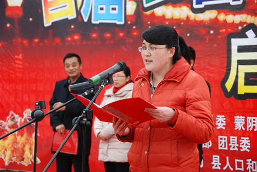 团县委书记宋艳阳在岱崮地貌民俗文化节上宣读魅力崮乡青少年征文比赛获奖名单