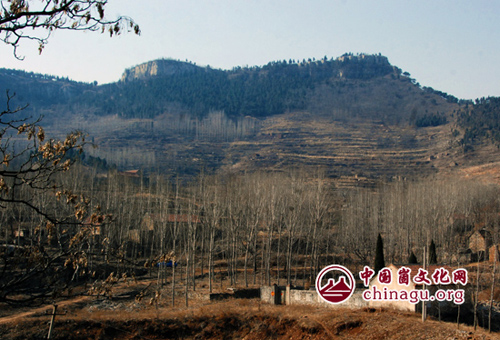 牛蛋山和鸡冠山,纯是当地百姓根据山的形状命名的。这是两个小山,两个小山是邻居,像对门。牛蛋山是椭圆形的,与其说像犍牛的蛋,不如说像个手雷,猛一看有点像岱崮笊篱坪前的瓮崮,但是比瓮崮小多了。本地人也叫它:渰水壶,意思是它像一个圆形的盛水的陶器,或者夜壶。鸡冠山的名字由来,因为山顶上一溜石头排在一起,高低起伏的样子像是公鸡的冠子,所以叫鸡冠山。向导说鸡冠山上的石头已经有一块开裂掉了下来,不然更像。鸡冠山朝向牛蛋山,或者是因为那椭圆形的篓里盛有蚱蜢吸引了它?1996年,省里的专家曾来这里考察,在鸡冠山及其西侧的山上发现了远古陶器。如今交通这么发达了,这里给我们的感觉还是大山,古代的百姓为了躲避苛捐杂税,来到这大山深处生活,像寻找到了陶渊明笔下的桃花源一样。但远古时代这里是有狼群出没的,解放后也还有过。百姓为了生活的宁静,不避虎狼,却畏惧官府,可见孔圣人的话“苛政猛于虎”真是至理名言。据说百姓最初生活在没有树木的鸡冠山周围,狼群来时就上山顶躲避,由于地势险要,狼攻不上去,时常被百姓用山石乱棍和钢叉打死,因此狼也自觉不来骚扰,百姓才得以生存下来。古代人自有古代人的生存智慧。可惜我们也只是从这两个山的山下路上经过,没能上去一观,因为我们的目标是这两座山西边更大的山: