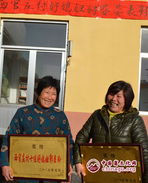 姑子唐培珍都被评选上了“十佳好媳妇”,抱着奖匾,姑嫂俩露出了甜美的笑容。姑嫂俩结婚后,10多年如一日,从