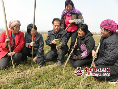 崮文化网讯“您看这麦苗是二类苗,在水肥管理上应提前,抓住3月中旬前是浇水施肥的好时机,及时浇水施肥,同时抓好中耕除草、病虫害防治、、、、”。