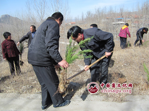 在安平崮下的棋盘石村荒山绿化现场,山坡上到处都是正在忙碌着的镇职工和村民,他们有的刨坑、有的护苗、有的浇水……忙个不停。村长公丕学谈到,棋盘石村北山由于土地贫瘠,岩石较多,机械无法施工,所有绿化工作都要靠肩扛手抬,为确保这片绿化苗木的生长,这几天镇村采用拖拉机拉水、职工村民挑水的方式,为新栽的10000株侧柏树苗浇了一遍水,确保苗木成活率。