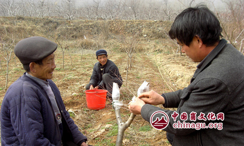 崮文化网讯 近日,山东省蒙阴县岱崮镇抓住当前蜜桃春季“切接”的好时机, 号召党员带头利用从网络学到的果树管理、品种改良等先进技术知识,帮助果农嫁接改良蜜桃新品种,提高果农收入。
