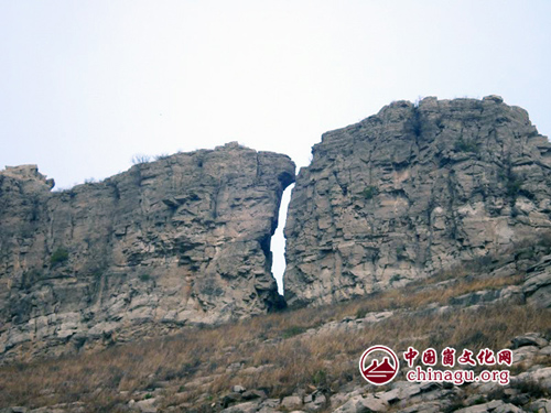 崮文化网 劈山,北魏郦道元《水径注》称:“劈头山”,山以其独特的景观而得名。主峰远望如裂,似神斧所劈,每当夕阳返照,双峰分外清晰,古人美其名曰:“劈峰夕照”。劈山这神奇的裂缝,作为青州最知名的景观,其成因历来无考。究竟是天工造物?还是古代人工开凿?