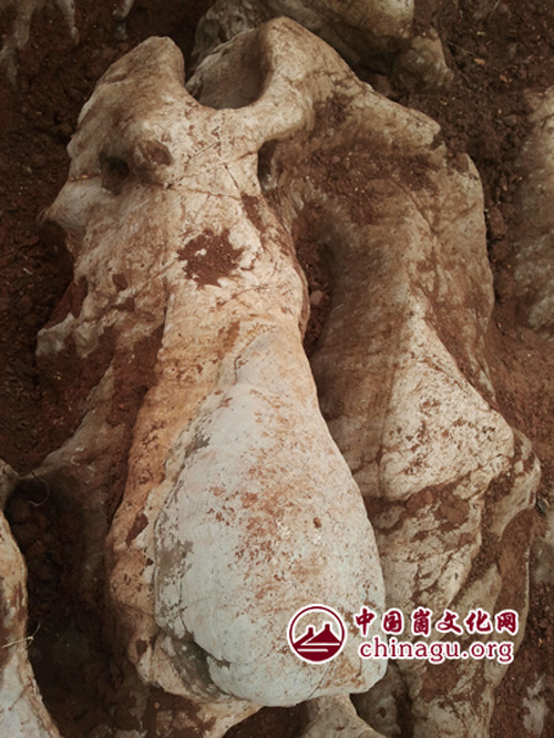 近日,该县盖家洞村村民王爱东,在整理自家农田时,发现一块重达60余吨,造型罕见的龙形奇石,鼻子、眼睛、龙角、龙尾造型奇异,栩栩如生,令人动容。该“龙石”尾端犹如金蛇起舞,更是形象极致。令人赞叹大自然的神奇造化。(王昊 摄)