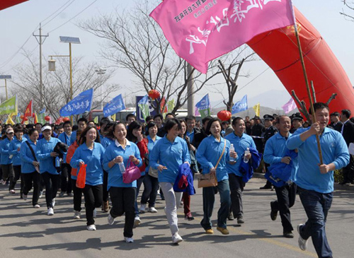 崮文化网讯 4月7日上午,2013年全国群众登山健身大会开幕式暨“五征杯”全国登山比赛在国家AAAA级旅游区—日照五莲山旅游风景区举行,来自北京、上海、云南、内蒙古等15个省、市、自治区代表队的近百名专业运动员及3000余名群众登山爱好者、自行车健骑爱好者参加了活动。
