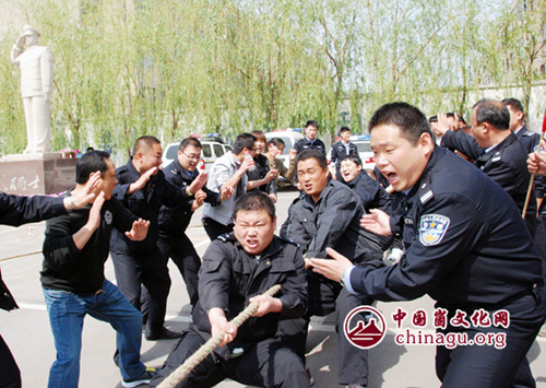 崮文化网讯 为庆祝“五一”劳动节,活跃警营文化、提高民警体能、技能素质,提升公安队伍的战斗力和凝聚力,4月27日,山东省蒙阴县公安局在局机关大院举办 “庆五一”警体运动会。来自各派出所、局机关、治安大队、刑警大队、特巡警大队、经侦大队、交警大队、消防大队、武警中队的12支代表队、200余名运动员参加比赛项目的角逐。