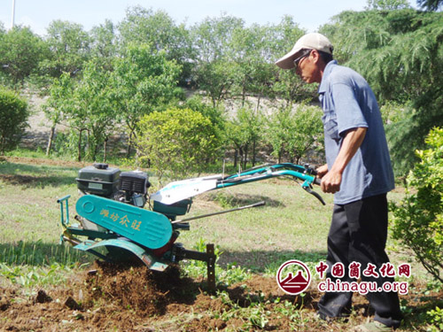小型旋耕机具有易启动,轻便耐用,重量轻,体积小,结构简单,操作方便,易于维修,油耗低,生产效率高等特点,可进行垄间旋耕松土除草等管理作业,使用此产品可以快速便捷的完成作业,替代劳累繁重的传统耕作方式。图为小型旋耕机在汶河二级台地进行耕松土除草作业。(张树宏)