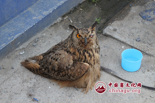 崮文化网讯 6月14,山东省蒙阴县坦埠派出所接到辖区水明崖村村民张明生报称:在其桃树地里了发现一只体形很大,眼线发白,面颊浅棕色的大鸟,可能是受伤原因在桃园里逡巡,民警迅速到达现场,并在多名村民的帮助下将这只大鸟捕获并带回派出所,随后民警联系县林业局及畜牧专业人员到派出所对这只大鸟进行了检查,未发现有严重伤情。据查证,这只大鸟名为雕鴞,是猫头鹰的一种,属于国家二级保护动物,目前,坦埠派出所已将该雕鴞已移交县林业局依法安置。(王振 卢兴刚摄影报道)