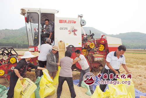 崮文化网讯 近日,在蒙阴县坦埠镇梓河沿岸的金色麦田里,一辆辆联合收割机来回驰骋,“吐”着金灿灿的麦粒,这标志着全镇小麦全面开机收割。由于灌溉及时,未受到天气灾害和病虫害的影响,全镇小麦长势喜人,如不受天气影响,预计全镇小麦将于六月低基本完成收割。