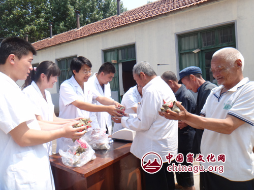 崮文化网讯 传统节日端午节,为弘扬中华民族“敬老爱老”的传统美德,蒙阴县桃墟镇医院的志愿者们在妇联和团委的组织下,前往敬老院献爱心为老人们查体送健康,并送去粽子,让今年端午节的敬老院,飘满志愿者粽子的淳朴、浓郁的香……
