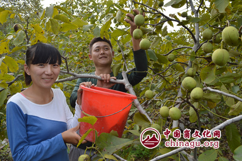 崮文化网讯 时下,蒙阴县常路镇的有机山核桃一落果,就被新泰、泰安的客商抢购。笔者在常路镇西下庄村东山上看到,漫山遍野的山核桃挂满了枝头,果农们个个喜笑颜开。近年来,该镇积极引导果农利用荒山、地边、堰边发展有机山核桃,并从品种改良、培育管理到产品开发,提供全程技术服务和指导,有效的提高了山核桃的产量和质量,所产核桃以个大,果壳薄,品质优,口感好,香脆味美,吸引了大量客商前来收购。目前,全镇500多亩山核桃已每公斤6元的价格,销往济南、泰安等地,亩收入在8000元以上。(张纪增)
