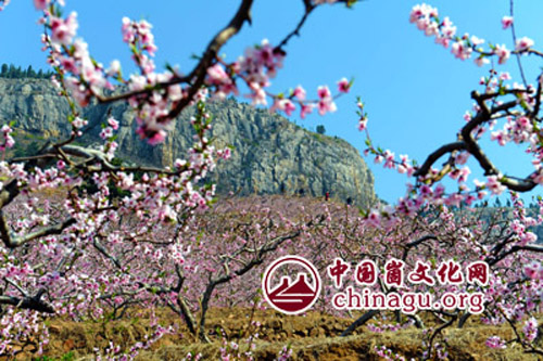 赏桃红烂漫如海,看崮山仰望蓝天,蟠桃盛宴让天庭汗颜,玉液琼浆醉倒八仙,千年追寻的世外桃园,远在天边,近在崮山。