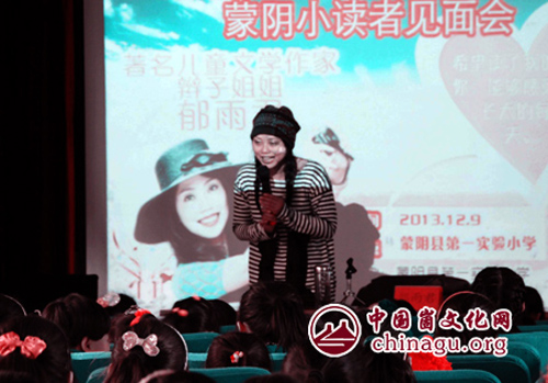 崮文化网讯 12月9日,儿童文学作家、辫子姐姐郁雨君来到蒙阴县第一实验小学举行小读者见面会,义务为小读者们讲授了科学阅读和作文写作知识。 郁雨君结和写作亲身感受,声情并茂地讲述了如何提高阅读和写作能力,并进行了亲切的互动,耐心细致的解答了小读者们在阅读写作中遇到的问题,有效地提高了小读者们的阅读兴趣和写作能力。 郁雨君是我国儿童文学作家,其别具一格的感性敏锐理论与评论写作在在儿童文学界具有一定的影响力。(石绍振)