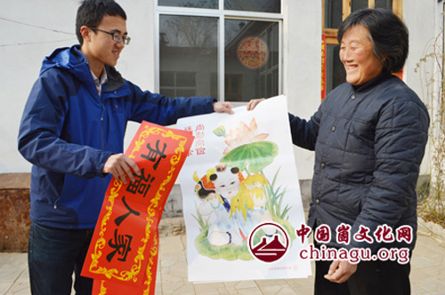 崮文化网讯 1月16日,蒙阴县常路镇文化站的工作人员来到省级文明村—石峰峪村,把中央文明办免费赠送的新年春联送到24户文明户手中,让群众提前感受到红红火火过大年的喜庆气氛。一幅幅寓意深刻的春联让群众爱不释手,不仅渲染了喜庆祥和的气氛,又使广大干部群众在潜移默化中受到教育,进一步营造了风清气正的社会氛围。此次活动共发放春联和年画50多幅。(张萍)