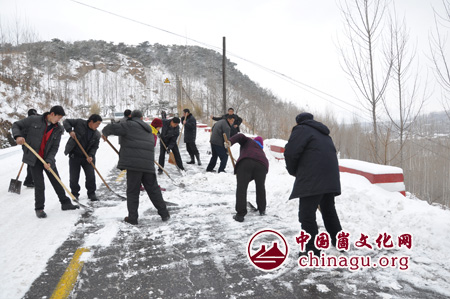 崮文化网讯 2月7日一大早,沂水县泉庄镇沙地村多名党员和村民代表冒着大雪,自发从家里带来铁铲、扫把等工具,在泉庄镇通往镇外的的主要道路及桥梁上清除厚厚的积雪,方便崮乡群众出行。(庄昆霖)