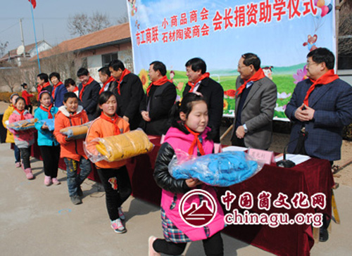 崮文化网讯 3月3日,临沂市工商联小商品、石材陶瓷商会到坦埠镇开展捐资助学活动为孩子们送去了3万元助学金和价值3万余元的羽绒服和足球等生活、体育用品。市委统战部副部长、市工商联党组书记张建军、副县长李玉国、县政协副主席、统战部长王开申出席仪式。 >>>第1页 >>>第2页 >>>第3页 >>>第4页