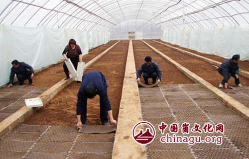 崮文化网讯 近日,在蒙阴县桃墟镇孙麻社区黄烟育苗大棚内,农民们在烟技员的指导下,对预留新品种做育苗实验,摆放最后的苗盘。