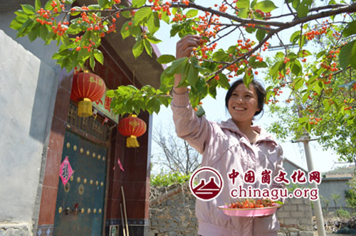 麻峪村自古以来,农户爱在房前屋后种植樱桃树的习惯,近年来,该村引导农民积极发展庭院经济,在院子或房前屋后种植樱桃、既利用了空闲土地、美化了人居环境,又增加了家庭经济收入。仅此一项,一年可给每个农户带来数千元的经济效益。(张纪增 张萍)