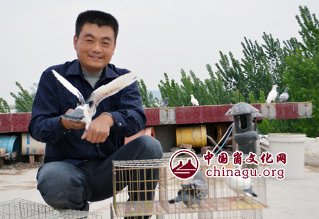 崮文化网讯 5月12日,蒙阴县常路镇南松林村农民王本玉一边查看鸽子的生长情况,一边高兴的说:“养鸽子投资少、占地小、易管理,每年我在屋檐下、阳台上养鸽子,净赚1万多元”。2012年,王本玉出于爱好,利用庭院内的空间,养起了观赏鸽和肉食鸽。在饲养上,采用全价配方饲料,让鸽子吃的是自己种植的小麦、玉米等杂粮,出栏的肉鸽羽毛光亮、颜色好看、肉质鲜嫩,深受消费者青睐,每年有上千只乳鸽“飞”向泰安、莱芜等城市的餐桌,收到了不菲的效益。(张纪增)