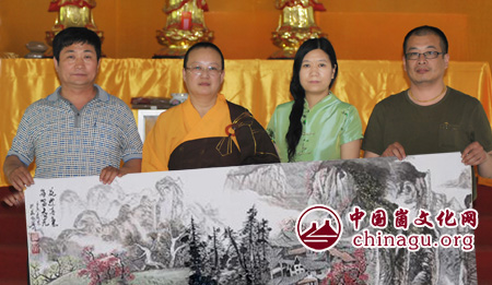 崮文化网讯 近日,著名女画家岩川将自己精心创作的20幅山水画作品无偿捐赠给蒙山明光寺,永久收藏。 岩川,原名谢凤,祖籍山东济南,出生蒙阴,现居广州。现为中国王羲之书画艺术研究院广州书画馆馆长,中国王羲之书画艺术研究院院长助理,临沂国际王羲之书画院常务副院长,华夏牡丹画院副院长。其作品题材广泛,多以山水见长。其作品可意境悠远,可气势磅礴,可灵趣生动,可空谷闻人声,可余韵润心田…流动着生活、艺术与自然的和谐之音,圆润通透,博雅大成。岩川现为国内多家画廊及艺术机构签约画家,作品深受书画收藏家喜爱及收藏被益为当代中国山水画最具潜力女画家之一。 中国崮文化网、蒙阴县崮文化研究会有关负责同志参加了捐赠仪式。