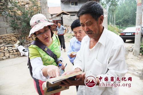 热情的村支书张道富帮着查阅资料,并亲自带领会员登山。