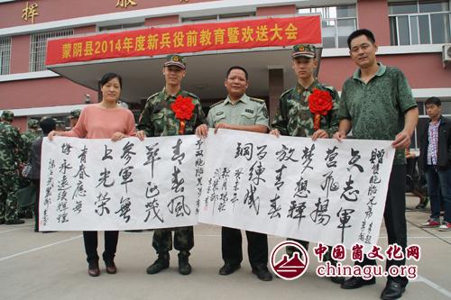 崮文化网讯 “把自己的火热青春献给军营,把自己融入到军队这座大熔炉里百炼成钢,成为国家和部队的有用栋梁……”9月15日下午,在山东省蒙阴县新兵役前教育暨欢送仪式上,双胞胎兄弟李超和李越激动地表示。双胞胎兄弟李超、李越,自幼生长在英雄孟良崮脚下,聆听着英雄故事长大的兄弟俩,在学校读书时就酷爱军事,每晚的央视第七军事频道,他们俩都一睹为快。尤其看到子弟兵在训练场上龙腾虎跃的场面,兄弟俩格外兴奋,报名参军的梦想便油然而生。今年7月份兄弟俩得知夏秋季征兵工作展开后,就踊跃应征并批准入伍。一对双胞胎,携手入军营。目前,欢送仪式上,双胞胎兄弟共同参军的事迹广为传颂。(傅家德 摄影报道) 崮文化网独家稿件 转载必究