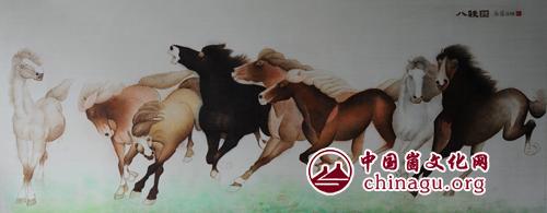 烙画作品《八骏图》