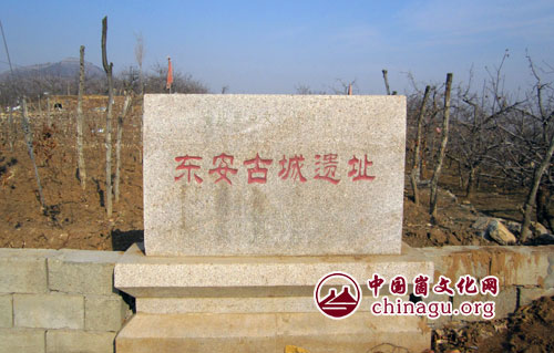 东安故城遗址属周至秦汉时期古遗址。东安村后的山前平原台地叫老城顶,是古城东安郡治所。经勘查,文化堆积以汉代遗存为主,并有龙山文化、商代文化遗存。