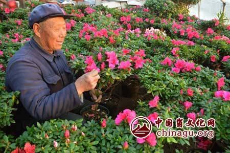 崮文化网讯 数九寒天,在沂蒙崮乡的蒙阴县常路镇常路社区李春宝的花卉大棚里,一盆盆娇艳的仙客来、鲜艳的杜鹃花等花卉构成了一幅美丽的“春光图”。正在给花卉浇水的李春宝高兴的说:“眼下花卉行情看好,光元旦我卖杜鹃花、瓜叶菊等就挣了1万多元,昨天下午,又有新泰的五六家客户打来电话,订购了吉祥果等花卉”。