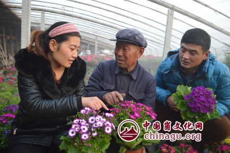 谈起的养花经历,62岁的李春宝说,他从小就喜欢养花,那时候在家里养个一二百盆的花,弄到集市上去卖,赚点钱补贴家用。2000年,他看到养花发展前景广阔,决定发展花卉养植。他说服了家里人,投资3万多元,在村西的紧靠205国道边的土地上,建起了占地1亩的冬暖式大棚。打那,他和妻子一门心思在花卉栽培管理及销售上。
