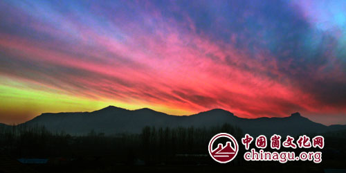 奇幻大自然,晚霞映西天。群峰连如筑,壮美沂蒙山。