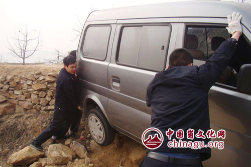 崮文化网讯 1月17日上午10时,岱崮派出所接到群众报警求助,称其面包车在岱崮镇杨宝泉村北侧的山上被困,随时有翻车的危险。派出所民警立即带领四人赶往现场。发现面包车后轮悬空前轮翘起,无法前进后退。车的另一侧就是十几米深的悬崖。民警立即安排人员用石块等将车辆前后轮撑住,防止翻车。接着找来当地五名群众,民警与群众共同努力终于将面包车推到安全地带。 经了解此车是司机回淄博时不熟悉地形使用导航带路行驶到此处,不敢前行,倒车时技术不佳卡在路边石头上的。民警帮其将车开到水泥路上,并指引司机从正路返回淄博。民警的救助行为受到司机和群众一致好评。(丁军国)