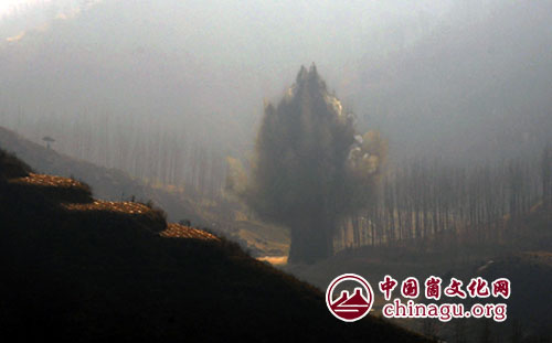 崮文化网讯 为进一步推动缉枪治爆专项行动开展,切实消除危害公共安全隐患,1月23日11时至13时,山东省蒙阴县公安局治安大队在在野店镇天井旺水库上游一山坳内将一批收缴的炮弹、雷管等集中销毁。