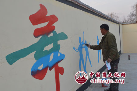 1月31日,常路镇文化站的工作人员正在彩画乡村大舞台背景。为活跃社区居民文化生活,去年以来,该镇把乡村大舞台建设作为丰富农村文化活动的一项文化惠民工程,加大投入,科学规划,在西高都、常路等社区建起了乡村大舞台,使社区居民在家门口唱歌跳舞,既锻炼了身体又愉悦了身心,从而使乡村大舞台真正舞动起了农村文化生活的新风采。
