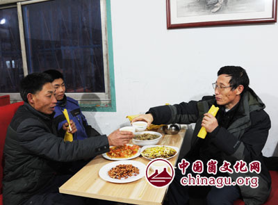 崮文化网 廉仕财是山东省蒙阴县岱崮镇大崮山上的养殖户,他今年饲养的百十头草猪全部卖出,我们真为他高兴。昨晚,在崮云间酒家相聚,向他表示庆贺。