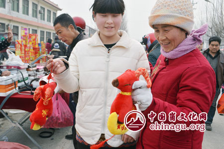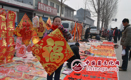 在大福字、春联、灯笼的映衬下,大集上更是一片红红火火。人们在选购瓜果蔬菜、畜蛋肉禽等年货外,更喜欢将红红火火的福字、对联、中国结买到家中,烘托过年的气氛。