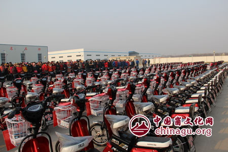 崮文化网讯 2月11日,山东欢乐家食品有限公司召开2014年度总结表彰大会,对131名为企业做出突出贡献的优秀员工进行了隆重表彰,其中118名员工每人奖励了1辆电动车,13名员工每人奖励了一台40英寸液晶彩电。