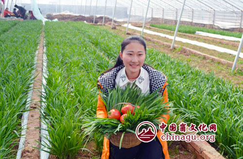 游客在蒙山山泉水蔬菜合作社有机蔬菜生产基地拍照留念