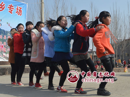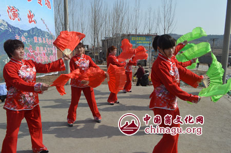 为丰富广大人民群众的节日文化生活,这个镇在全镇各行政村(社区)建立起了广场舞表演队伍。目前全镇共拥有10支表演队,200多名队员,春节前后,表演队的队员们都自发的来到广场,为村民们献上了精彩的表演。同时,这个镇的金皇山艺术团还精选了20多个文艺节目,内容不仅丰富多彩,还寓教于乐地把党的群众路线教育、乡村文明建设和好公民道德风尚等社会主义核心价值观教育有机地融进部分节目中。从去年腊月初一开始,这个艺术团在全镇巡回演出,为崮乡村民们献上了精彩的表演,赢得了群众的一阵又一阵的掌声。