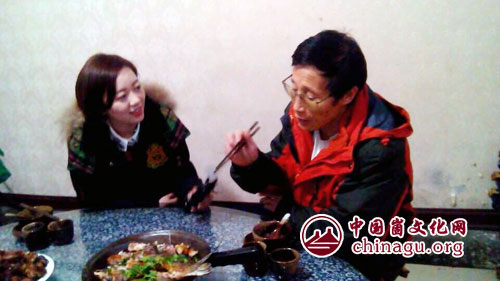 为了感谢国际两仪点穴功夫王、中国传统武术的一座高峰宋庆福师父对我的悉心栽培,我就用蒙山老窖酒孝敬他。
