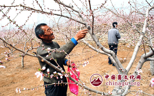 崮文化网讯 时下,地处岱崮地貌山区的蒙阴县坦埠镇8000余亩早桃桃花次第开放大小果园里,田间地头,到处是果农们疏花、授粉的忙碌身影。