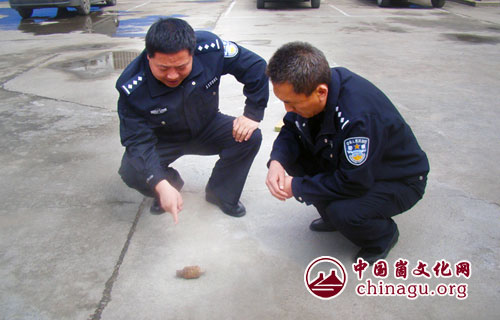 崮文化网讯 4月3日,山东省蒙阴县公安局坦埠派出所民警接到辖区石龙庄村干部电话报称:该村村民在昨天下午修路挖土时,挖到一枚类似手雷的东西,请求民警前去处置。民警到达现场后,初步确认是一枚战时遗留的手雷。民警将该手雷妥善包裹后带回,并移交县局治安大队处理。