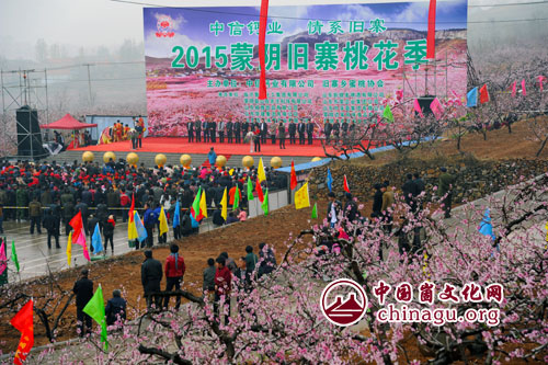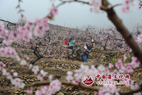 崮文化网讯 4月2日,春雨霏霏,腾龙崮下林海花潮,朵朵桃花在雨水的滋养中,更加娇艳夺目。数千名市民游客纷至沓来,争睹2015蒙阴旧寨桃花季的热闹景象。