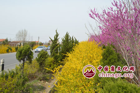 崮文化网讯 春暖花开季节,沿着205国道驱车来到蒙阴县常路镇,一路走来,进入眼中的是一副迷人的风景,连翘花、紫荆花竞相怒放,满枝金黄,一簇簇,一朵朵,紫红粉嫩,艳丽可爱,把国道两侧变成了精品“花廊”,形成一道靓丽的风景线。
