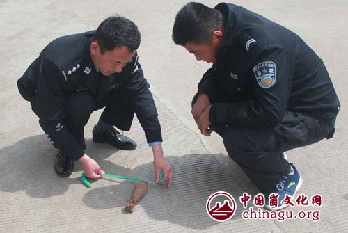 崮文化网讯 4月7日,蒙阴县公安局垛庄派出所民警到孟良崮山脚下红日村走访群众时,听说该村村民王某在孟良崮山田中劳作时捡到一枚战时遗落的炮弹并放于家中。民警意识到问题的严重性,立即赶到该村民的家中,靠上做工作,使该村民认识到炮弹的危险性并主动将炮弹交与民警处置。